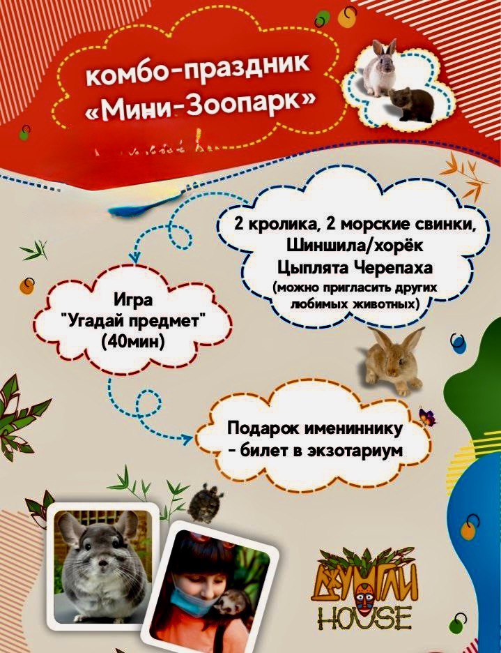 Добро пожаловать в интернет-магазин зоопарка "Джунгли House"! Здесь вы можете приобрести билет в зоопарк, забронировать празднование вашего дня рождения или записаться на урок нашей ZooШколы "Зеленые". Приятных покупок!